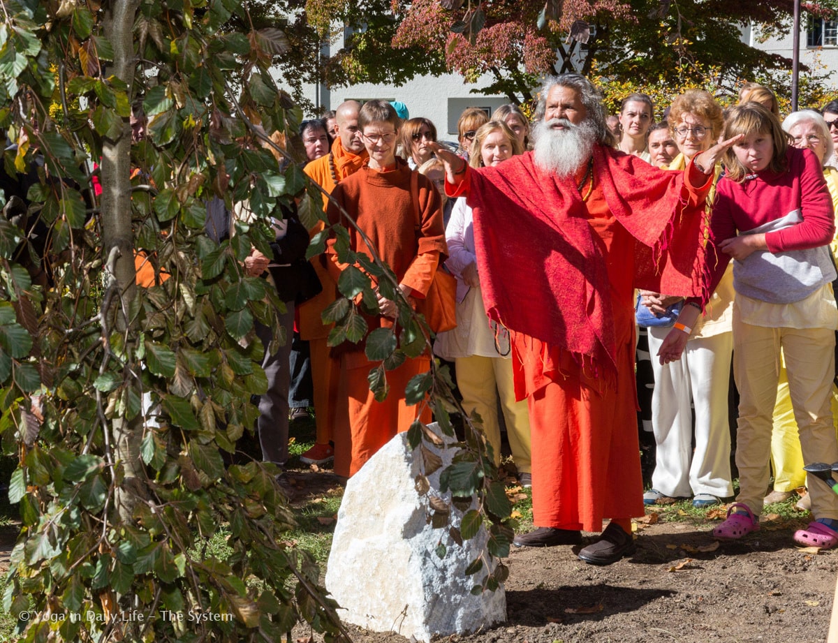 A notable event took place on Saturday when Vishwaguruji planted a Peace Tree, together with city councillor Mag. Irene Hofstätter Lackner, the director of the city gardens DI. Hannelore Hudezeck, and gardener Herbert Karl. The Vice Mayor of Villach, Dr. Petra Oberrauner and Sister Andreas from the Wernberg Monastery sent messages of greeting for the occasion. The event took place in the park named after Walther von der Vogelweide, a famous medieval bard. The tree that was planted is a very special and rare tree, a 'hanging purple beech', which should live up to 350 years and grow to a height of 25m. While chanting Vedic mantras for peace and harmony, Vishwaguruji blessed the tree, that it shall stand for health, prosperity and fulfilment of good wishes.