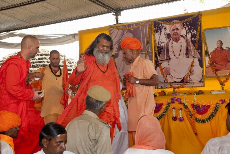 "Today the celebration of Gurupurnima has ended officially. In fact there was Satsang from Sunday till Monday noon because there were 2 days of full-moon. The main celebration was on Monday, 26 July, but it started already on Sunday. Thousands of people came from all India to greet Swamiji, it was a colourful picture of Bhaktas. On Sunday, it started already in the morning at 6am with prayer and at 9 am prayer at Holy Guruji's Mahasamadhi, at 10am was Guru Pooja under the "tin shed", a roofed place where an altar was built and all activities took place. Thousands found place there. During the whole day lectures, videos and bhajan singing took place and Satsang in the evening. There was bhajan singing during the whole night from 25th to 26th July. All Bhaktas got excellent eating from our Indian kitchen.