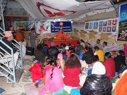 The time we have had with Swamiji in Nepal was so much filled with his Love, Light and Wisdom. After the morning sadhana most of the days we were enjoying with Swamiji on the warm Sun on his terrace. Following we were going either for walks, visits, bandharas, performing karma yoga in the ashram, or taking the trips to the temples, villages or view-points to the beautiful Nepali Himalayas, valleys, lakes. As more and more local people and their children were also joining the Swamiji's satsangs, our evenings were becoming a true joint celebration of singing bhajans, mantras, prayers, dancing and meeting of all kinds of people of good will. During his stay in Pokhara Swamiji has touched the hearts of so many local people, especially children, who have touched all of us with their sincerity, love and affection to Swamiji. So perhaps Swamiji might return sometime.
