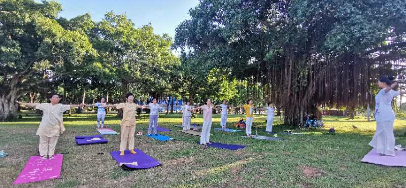Groups of Yoga in Daily Life practitioners celebrated International Day of Yoga outdoors at parks in Chengdu City and on the island province of Hainan. And those individuals in the city of Wuhan who were still under lockdown restrictions practiced at home instead.