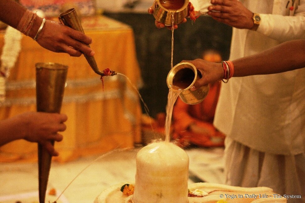 In Shiva temples worldwide,  abhisheka—the ceremonial bathing of the Shiva Lingam—is performed continuously throughout the night with water, milk, honey, and other sacred offerings. As mantras echo through the temples, the atmosphere becomes charged with divine energy and rising consciousness. During the abhisheka, sacred mantras such as Om Namah Shivaya and the Mahamrityunjaya Mantra are reverently repeated.