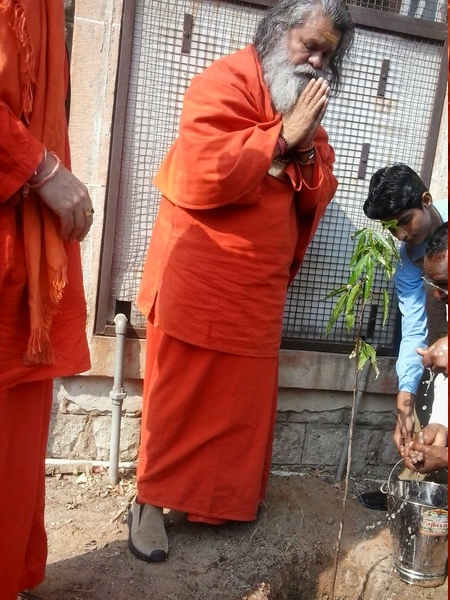 His Holiness Vishwaguru Swamiji was invited and honoured as chief guest at the Governmental Bangad Senior Secondary School in Pali, Rajasthan on 15 January 2014, where an Ashoka tree was ceremoniously planted in front of the school. The special function was organised to thank students for their humanitarian work in the National Service Scheme. The students received Swamiji's blessings for having offered and given their help, assisting with a variety of jobs in the local community for one week.