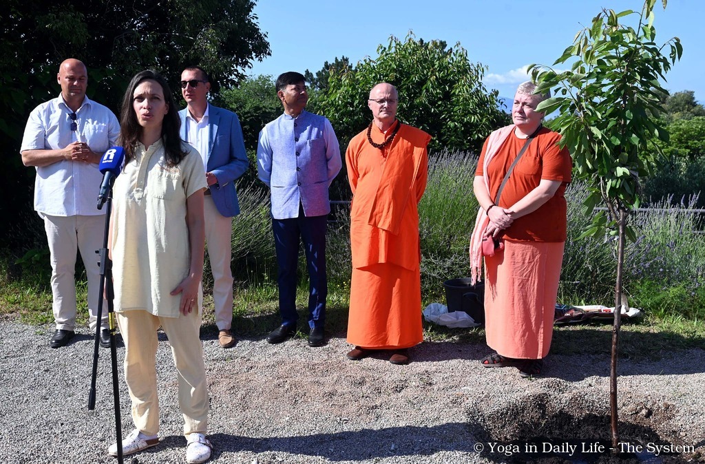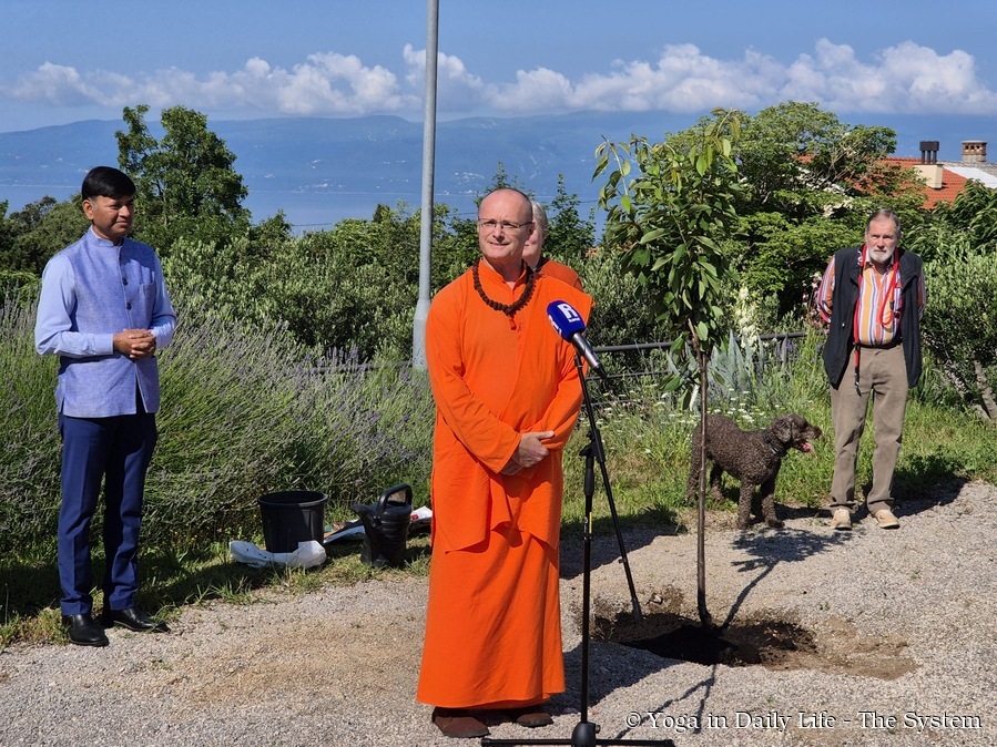 This symbolic act of environmental protection was recognised by the presence of several distinguished guests, including the Ambassador of India to Croatia, H.E. Raj Kumar Srivastava, the mayor of Rijeka, Mr Marko Filipović, president of the Hindu Religious Community of Croatia, Mahamandaleshwar Swami Vivekpuri, president of the Yoga in Daily Life Rijeka Society, Maja Stošić, the Head of Forestry Rijeka, Mrs Lidija Crnković, and long term devotee and sannyasin of Vishwaguruji, Swami Anandi Puri. Many other friends, neighbours and citizens of Rijeka were also present.